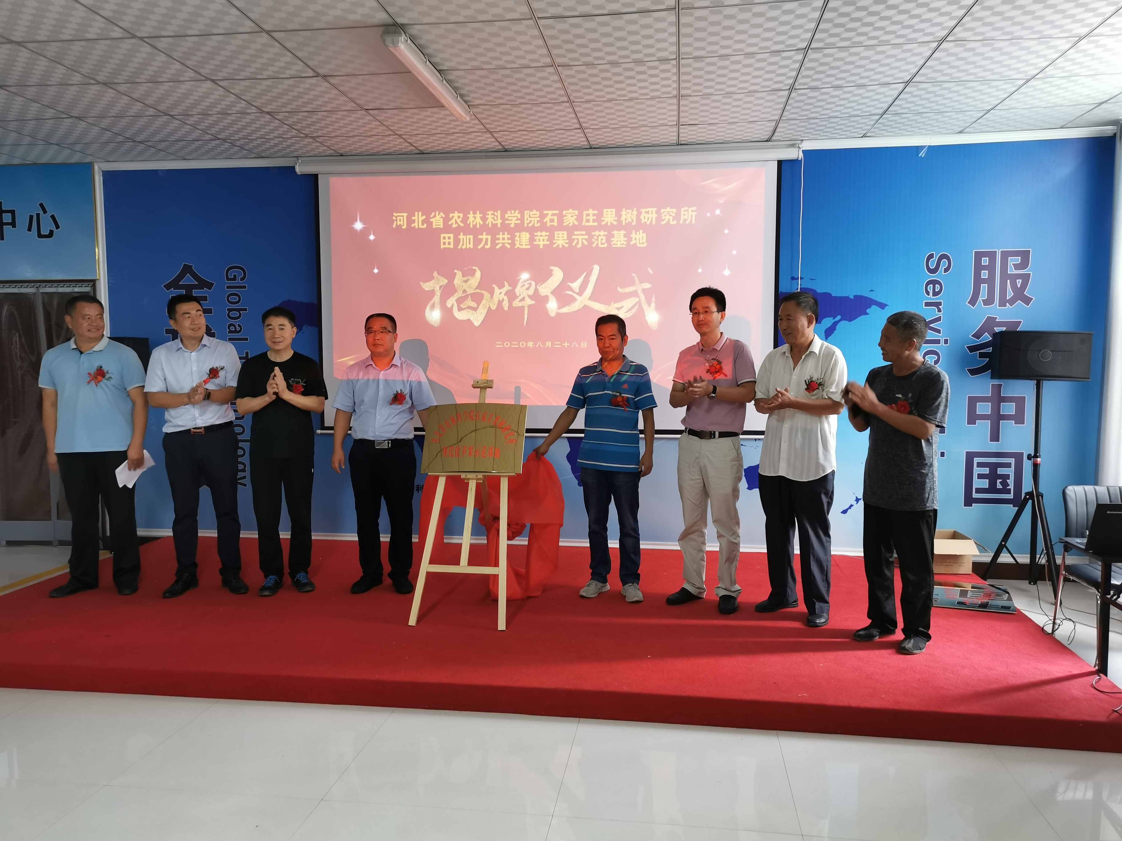 8月28日,石果所-邢臺(tái)市任澤區(qū)蘋果示范基地揭牌儀式在河北省田加力生物科技股份有限公司舉行,石果所副所長馮建忠研究員、任澤區(qū)副區(qū)長張煥君參加儀式并講話。