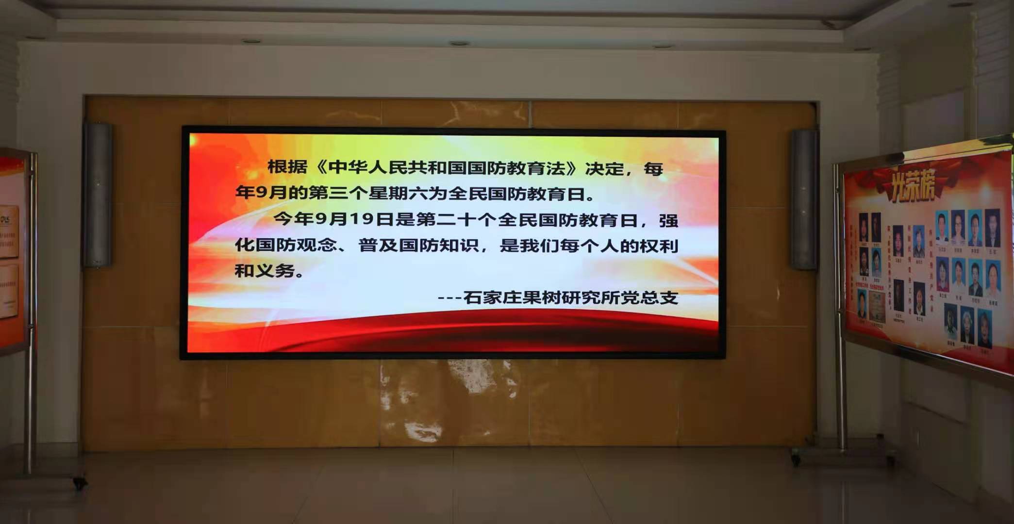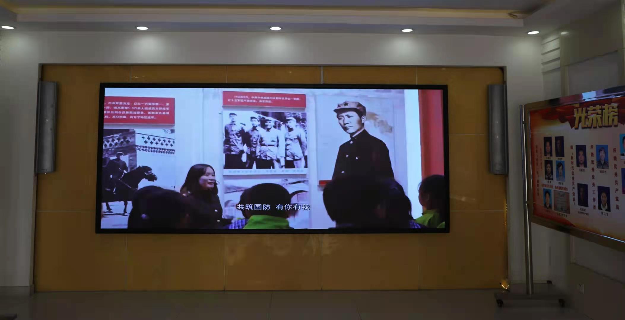 我所通過網站、職工微信群、黨員微信群等媒介渠道宣傳、普及國防教育知識;利用電子屏幕滾動播放宣傳片與宣傳語,營造濃厚的氛圍。