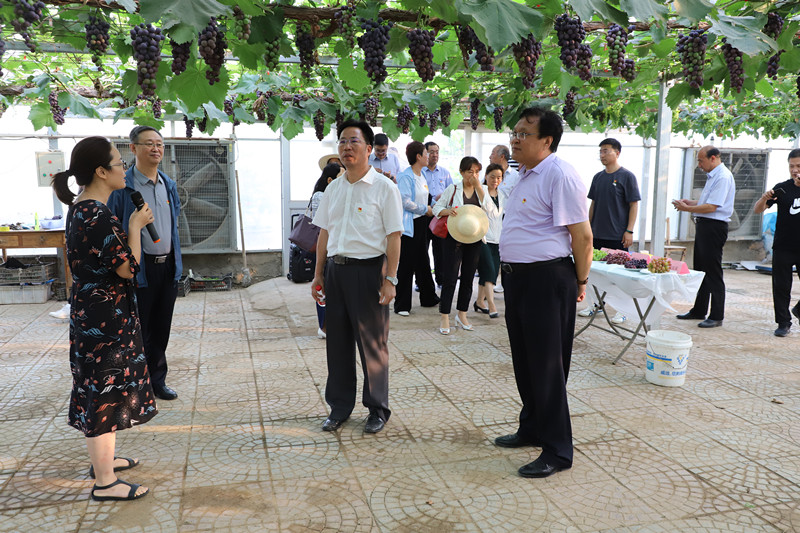 座談結束后,大家冒著酷暑參觀了石果所試驗田,聽取了桃、梨、草莓、葡萄、杏等研究室負責人的工作匯報。省科技廳李叢民副廳長對石果所果樹育種工作給予高度評價,也給出了有針對性的指導意見。