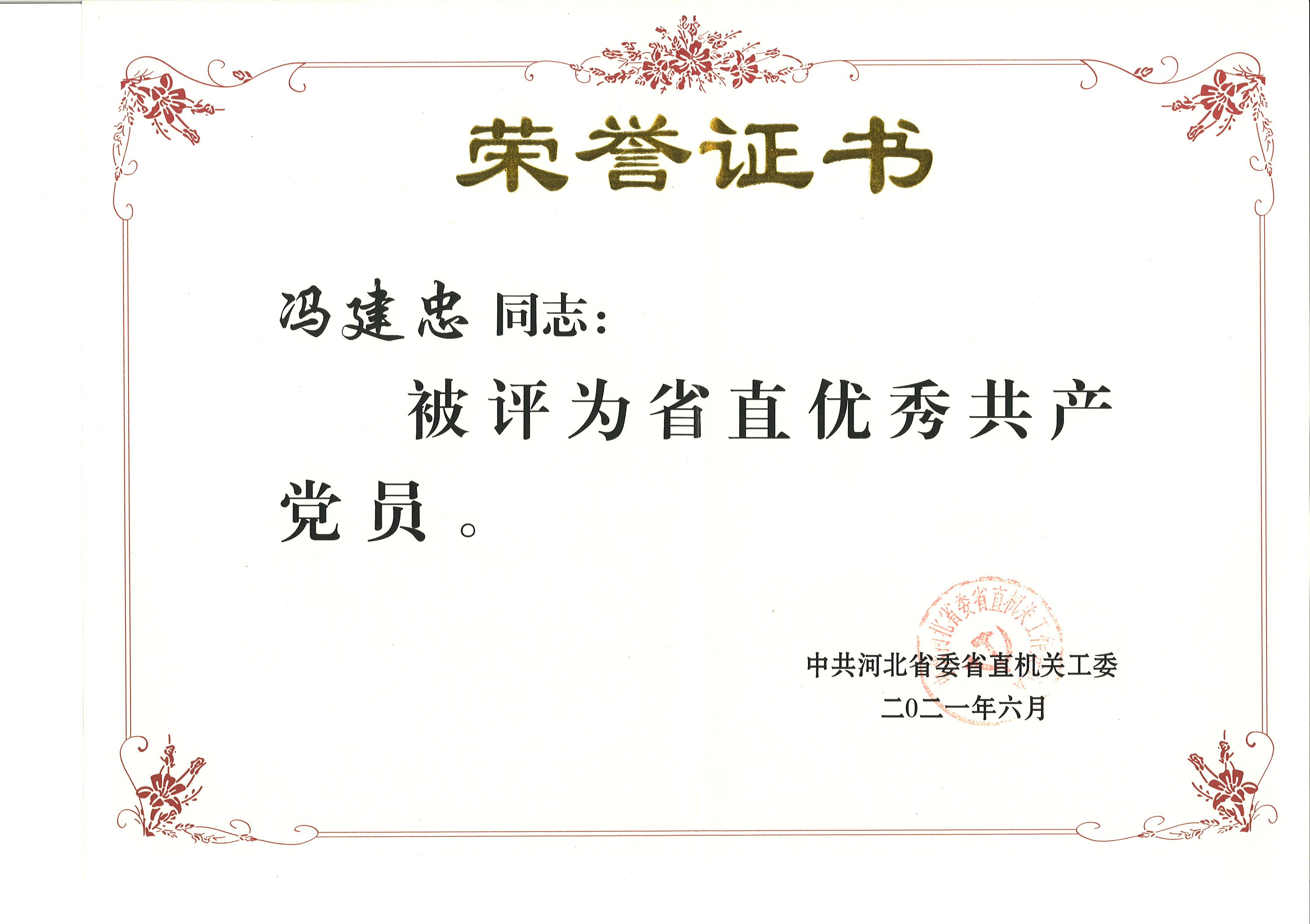 近期,在慶祝中國共產黨成立一百周年的重要時刻,石家莊果樹研究所認真學習貫徹習近平新時代中國特色社會主義思想和“七一”重要講話精神,把“四史”學習、宣傳教育作為重要政治任務,充分發揮基層黨組織戰斗堡壘作用和黨員先鋒作用,在實際工作中,結合農業科技創新、科技服務工作實際,扎實開展“我為群眾辦實事”實踐活動,取得明顯成效,在省委省直工委印發《關于表彰省直優秀共產黨員、優秀黨務工作者和先進基層黨組織的決定》中,我所副所長馮建忠被評為“省直優秀共產黨員”榮譽稱號。