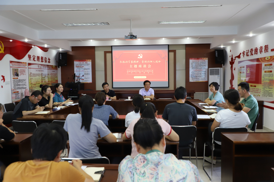參觀結(jié)束后,為一進(jìn)步提煉和升華科學(xué)家精神,青委會(huì)召開(kāi)了專(zhuān)題座談會(huì)。會(huì)上,董輝副所長(zhǎng)首先為大家講述了“太行山上的新愚公”李保國(guó)老師的先進(jìn)事跡。隨后大家談體會(huì)、講心得、表決心。董輝副所長(zhǎng)充分肯定了此次活動(dòng)的意義,鼓勵(lì)青年人要長(zhǎng)志氣、硬骨氣、蓄底氣。龐昭進(jìn)所長(zhǎng)將老一輩科研人的科學(xué)家精神凝練為“敬業(yè)、求實(shí)、創(chuàng)新、奉獻(xiàn)、傳承”5個(gè)詞語(yǔ),并以生動(dòng)的例子闡釋了其深刻內(nèi)涵。