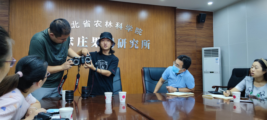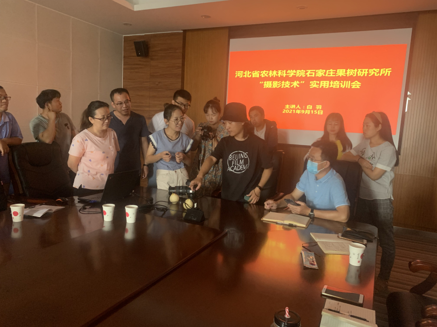 白老師從相機的區分、主要功能、室內會議與室外田間拍攝時相機參數設置等方面為大家講解了攝影的實用技術。同時,通過現場實操展示了攝影手法。與會人員將自己在工作、生活中遇到的攝影問題與白老師進行探討交流。重點指導了拍攝各種果樹試材不同狀態的拍攝技巧,并將大家現場拍攝的照片進行了指導點評,力爭將部分實用攝影知識現場消化。室內培訓結束后還到蘋果試材地講解拍攝注意要點,指導拍攝。