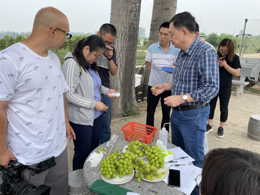 2021年9月18日,我院與定州市農業農村局共同邀請有關專家組成田間檢測組,對我所承擔的我院與定州市人民政府科技合作項目“定州市鮮食葡萄高效生產技術示范”進行了田間檢測。