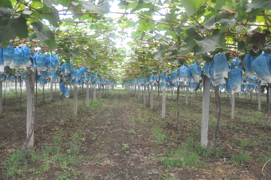 與會(huì)人員觀摩了晉州市馬于鎮(zhèn)澤桑農(nóng)民專業(yè)合作社葡萄示范園,示范園主栽品種是經(jīng)濟(jì)效益較高的陽光玫瑰。葡萄園采用避雨栽培模式,通過實(shí)施我所簡易小棚架輕簡化栽培技術(shù)和增施有機(jī)肥技術(shù),陽光玫瑰葡萄優(yōu)質(zhì)商品果率達(dá)90%以上,效益是巨峰葡萄的數(shù)倍,在冀中南葡萄生產(chǎn)中起到了示范引領(lǐng)作用,推動(dòng)了區(qū)域葡萄產(chǎn)業(yè)的高質(zhì)量發(fā)展。參會(huì)人員在觀摩中看到了新技術(shù)的實(shí)施效果,交流了葡萄種植經(jīng)驗(yàn),開闊了眼界,提高了對葡萄種植技術(shù)的認(rèn)知。