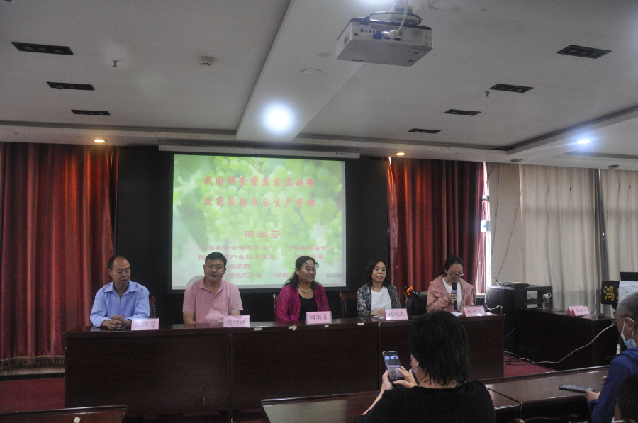 2021年9月28日,我所與晉州市農(nóng)業(yè)農(nóng)村局聯(lián)合在晉州召開“鮮食葡萄優(yōu)質(zhì)高效栽培技術(shù)培訓(xùn)及觀摩會(huì)”。會(huì)議邀請了國家葡萄產(chǎn)業(yè)技術(shù)體系崗位科學(xué)家、天津農(nóng)學(xué)院田淑芬研究員。