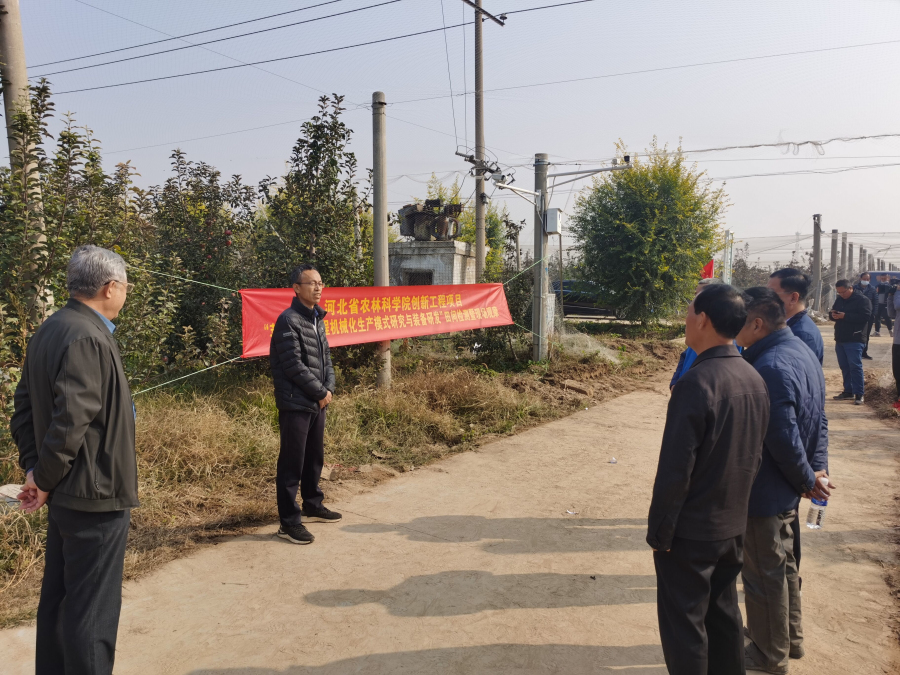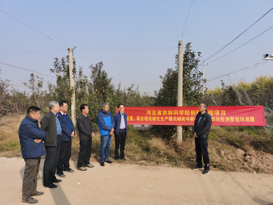 2021年10月24日,河北省農林科學院邀請有關專家組成田間檢測組,對我所承擔的院科技創新專項“蘋果、梨全程機械化生產模式研究與裝備研發”(編號:2019-3-6-1)項目實施效果進行了現場檢測,檢測組專家聽取了項目負責人就項目建設內容及實施效果的匯報。
