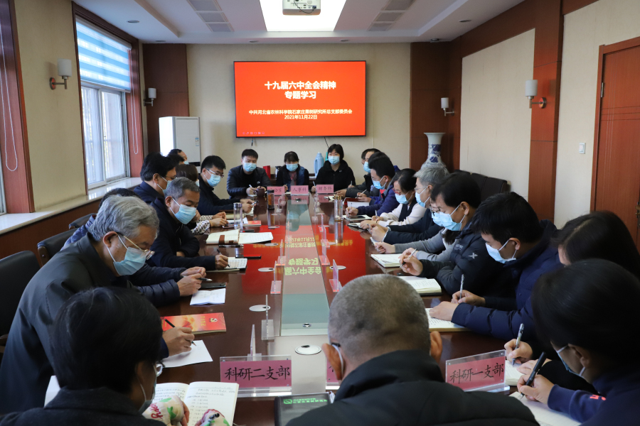 龐昭進所長與大家分享了十九屆六中全會精神學習體會,并就如何立足本職工作貫徹落實好全會精神提出了具體要求。他強調,要加強學習,統一思想,將全會精神轉化為工作動力。在工作中不斷激發創新活力,提升創新實力,增強創新能力,提高成果產出率與轉化率。要高質量完成年初既定目標,系統總結今年各項工作,謀劃明年工作發展思路,提升研究所在政府和社會的知名度和影響力。