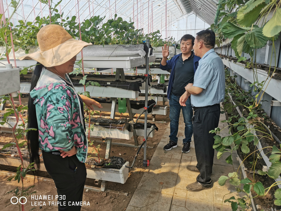 2022年5月18日上午,草莓專家楊雷研究員和李莉研究員赴正定縣富民草莓示范基地進行設施避雨基質育苗技術指導。
