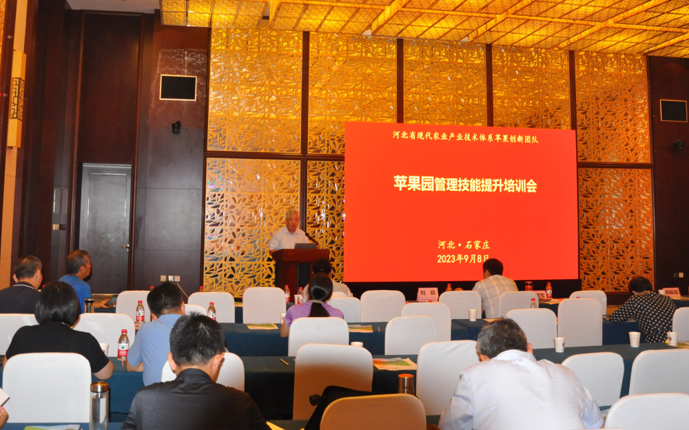 2023年9月8日,河北省現代農業產業技術體系蘋果創新團隊在石家莊市鹿泉區成功舉辦河北省蘋果園管理技能提升培訓暨機械觀摩活動。蘋果創新團隊首席專家、院黨組成員、副院長張建軍,河北省農業農村廳特色產業處一級調研員王建民、河北省特色產業協會秘書長于鳳玲等出席活動并致辭。