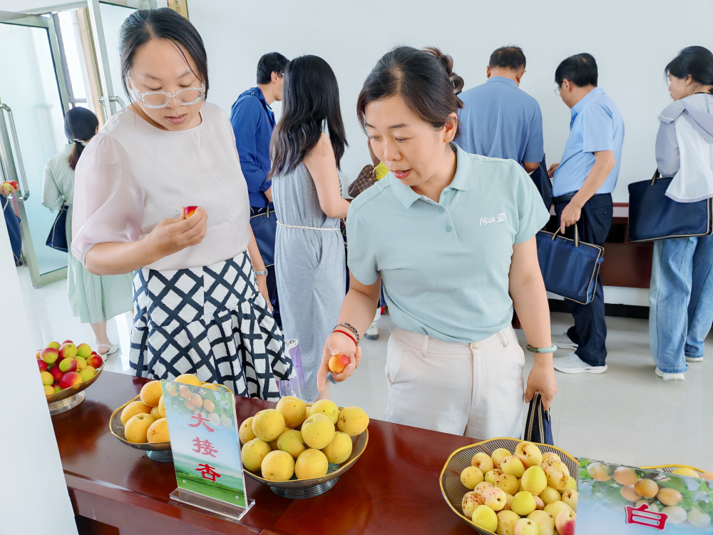 會中,來自全國各地的14位專家、企業家圍繞杏的資源、品種、栽培、植保、裝備等領域以大會報告的形式進行了精彩分享,對陽高縣主栽杏品種及特色農產品進行了品鑒,對大咀窯村、新孫仁堡村杏種植基地和中馳杏脯生產車間進行了實地參觀。會后,武曉紅團隊就項目申報、資源引進、晚霜凍害及老舊杏園改造等內容與北京林果所、遼寧果樹所、新疆農科院、山西農大果樹所、鄭州果樹所及河北農大杏團隊進行了深入交流,在加強項目聯合申報、特異資源互通有無、先進技術成果共享等多方面達成一致意見。