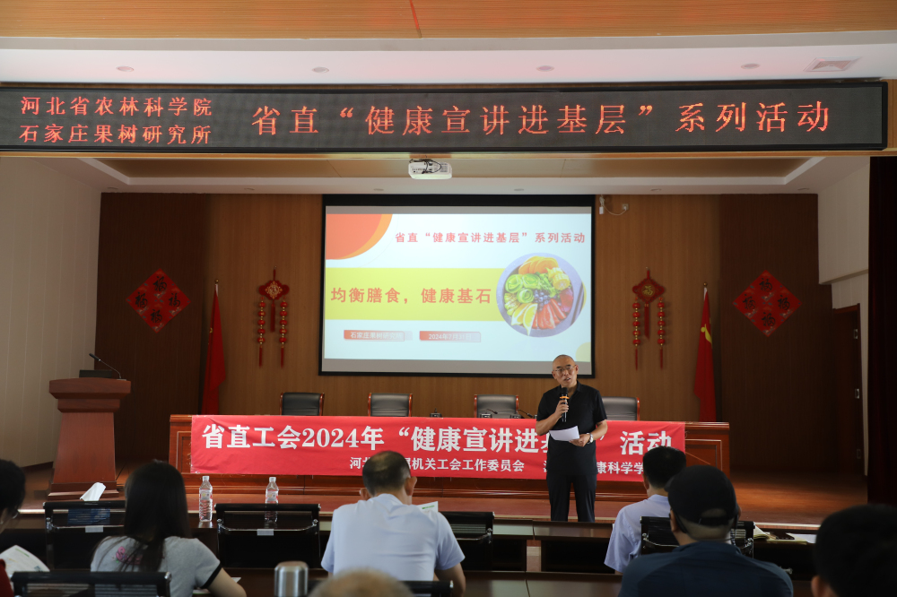 為積極響應省直工會“健康宣講進基層”活動安排,提升廣大職工健康生活意識,豐富健康飲食知識,7月31日上午,所工會在學術報告廳舉辦“均衡膳食,健康基石”飲食健康主題講座?;顒佑墒≈惫鬓k,河北省健康科學學會協辦,特邀石家莊市第三醫院營養科專家為大家詳細講解了正確的飲食結構、烹飪方法及三伏天飲食注意事項等,內容豐富、科學性、實用性強,使廣大職工豐富了健康飲食知識,樹立了正確的健康飲食觀念。下一步,所工會將結合職工的實際需求,舉辦內容更為豐富的、有助于身心健康的知識講座。