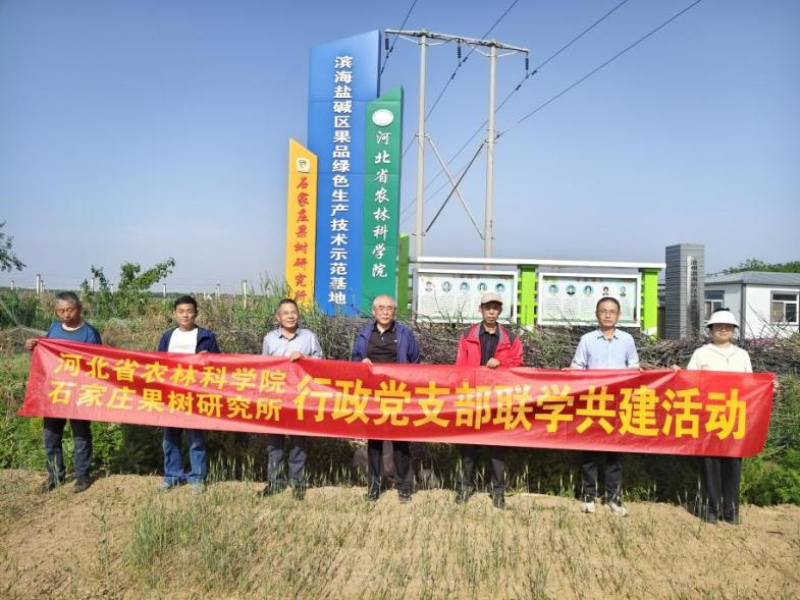 我所積極貫徹落實習(xí)近平總書記關(guān)于鹽堿地綜合利用的重要講話精神,在滄州中捷農(nóng)場建立“濱海鹽堿區(qū)果品綠色生產(chǎn)技術(shù)示范基地”,開展鹽堿地綜合改造利用相關(guān)工作。近日,為進一步發(fā)揮黨建引領(lǐng)作用,推動黨建與業(yè)務(wù)深度融合,我所行政黨支部與中共滄州臨港中捷農(nóng)業(yè)發(fā)展有限公司支部委員會開展“聯(lián)學(xué)共建促發(fā)展,科技興農(nóng)惠民生”活動,副所長宣立鋒帶隊,行政黨支部書記、黨員代表參加。