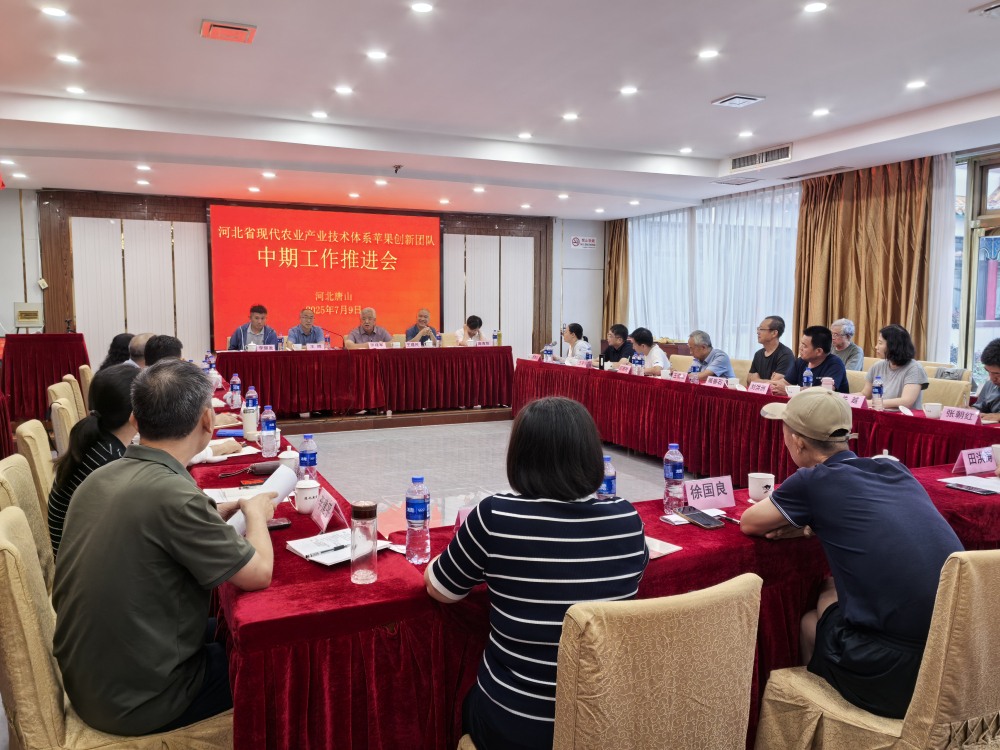 2025年7月9日,河北省現(xiàn)代農業(yè)產業(yè)技術體系蘋果創(chuàng)新團隊在唐山市遵化市召開了2025年中期工作推進會。我院原副院長、蘋果創(chuàng)新團隊首席專家張建軍研究員,省農業(yè)農村廳原二級巡視員王建民、特色產業(yè)處、科學技術處、我院科研部相關負責同志,團隊崗位專家、綜合試驗推廣站站長及團隊成員40余人參加了會議。