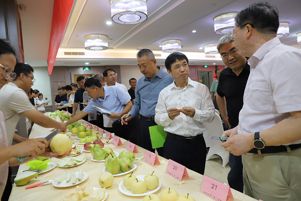 會議期間,與會專家學者對全國15家育種單位選送的58個梨新品種(系)進行了鑒評。鄧秀新教授與張紹鈴教授分別作了專題學術報告:鄧秀新教授以《果樹產業發展趨勢與未來五年的建議》為題,從果樹品種創新、育種技術突破、育種發展規律等核心維度深入剖析產業現狀,為未來果樹產業高質量發展提供前瞻性的指導建議;張紹鈴教授在《淺談果樹科技創新與產業應用融合的體會及案例》報告中,創新性提出“以應用為導向、以需求定課題”“基于應用場景驅動的有組織科研” 等果樹科研新理念,為破解“科研與產業脫節” 難題提供新思路。