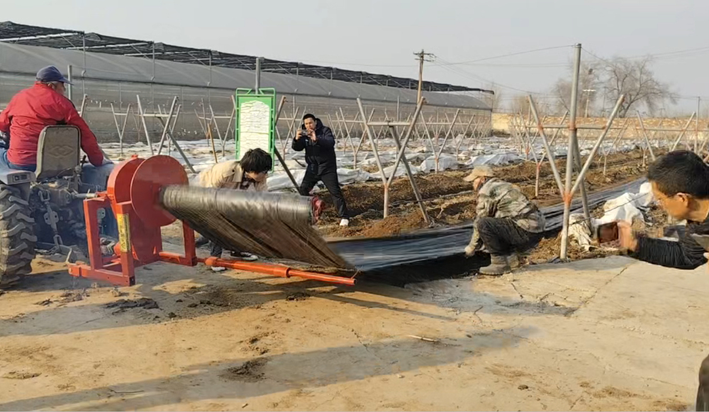 通過現(xiàn)場操作演示,一臺拖拉機(jī)配備出土機(jī)械與自動卷膜機(jī)械后,僅需短短幾分鐘,即可完成一行以“地布+埋土”方式越冬葡萄的出土工作,并將地布自動收卷。此舉大幅提升了工作效率,顯著減輕了勞動負(fù)擔(dān)。