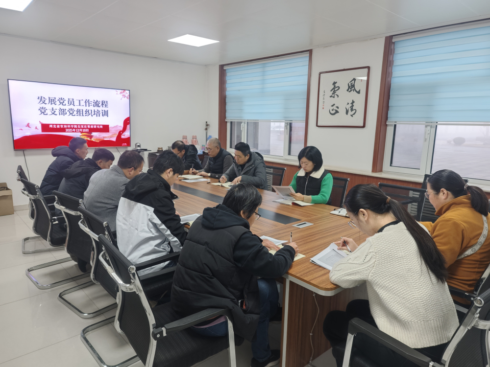 為進一步提升黨務干部專業素養,規范工作流程,2025年12月18日,我所黨總支召開黨建工作專項培訓會。黨總支委員、在職黨支部委員參加會議,黨總支書記、所長鄢新民主持會議。