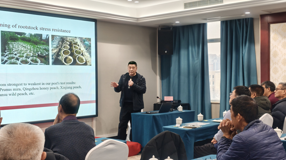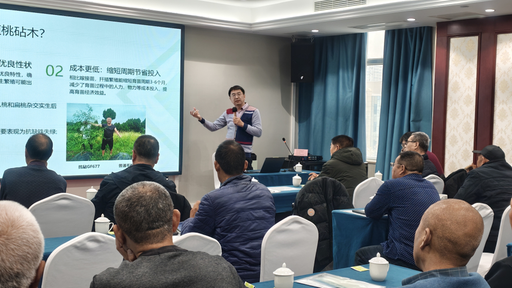 會上,各示范縣負責人就今年的工作進展情況及產區出現的新問題進行了匯報。任飛研究員和姜林研究員就產區出現的問題以“桃砧木扦插技術實操培訓”和“核果類砧木特性及其苗木生產技術”為題進行了技術講座,并現場解答了果農提出的疑問。